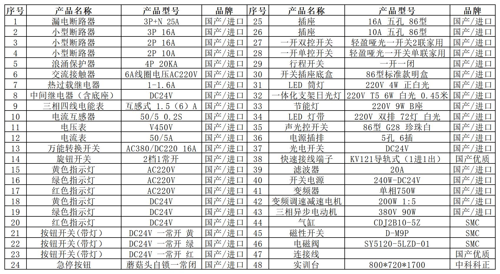 装备型号:ZDWX-DGO1CD/S。该装置采用国际常用的模块化设计,根据不同的实训考核内容配置相应的实训模块,实训方便、布局合理、易于扩展升级,实训内容涵盖电工仪表、电工接线工艺、电子电路、电工照明配电、电力拖动、PLC综合训练、触电急救、安全消防等,符合初、中级、高级电工国家职业标准教、培、考的要求,适应各职业学校、技工学校、中专学校、劳动培训及技能鉴定机构等单位的教学培训、实训考核、技能鉴定。